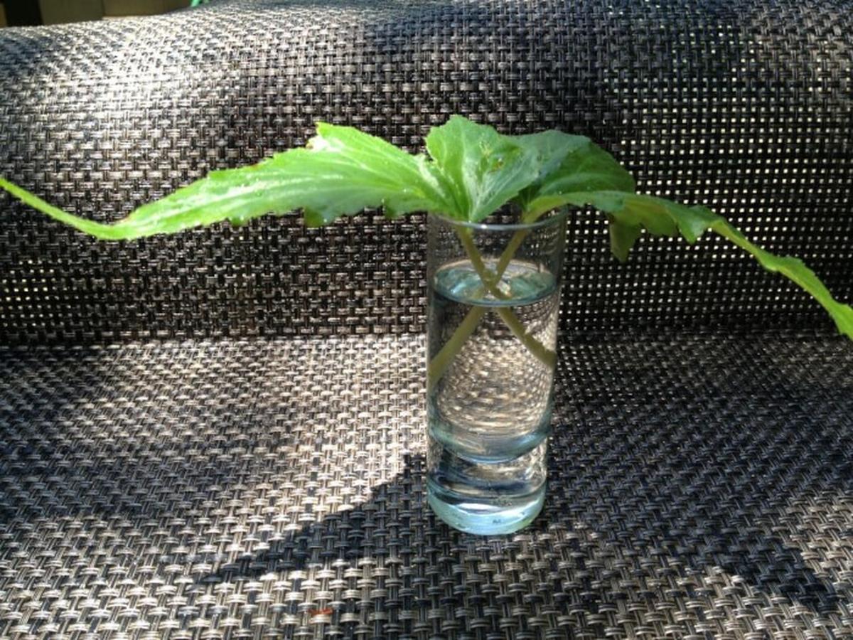 Place this cutting in a jar filled with fresh water and watch as roots gradually emerge from the bottom.