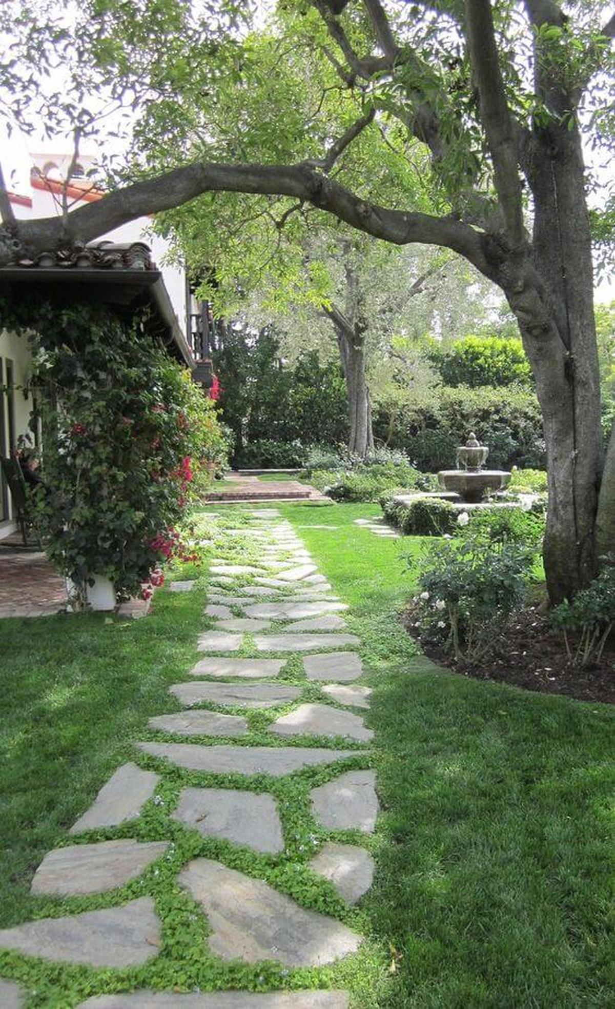 Stone Garden Path With Ground Cover Plant For Green Lawn