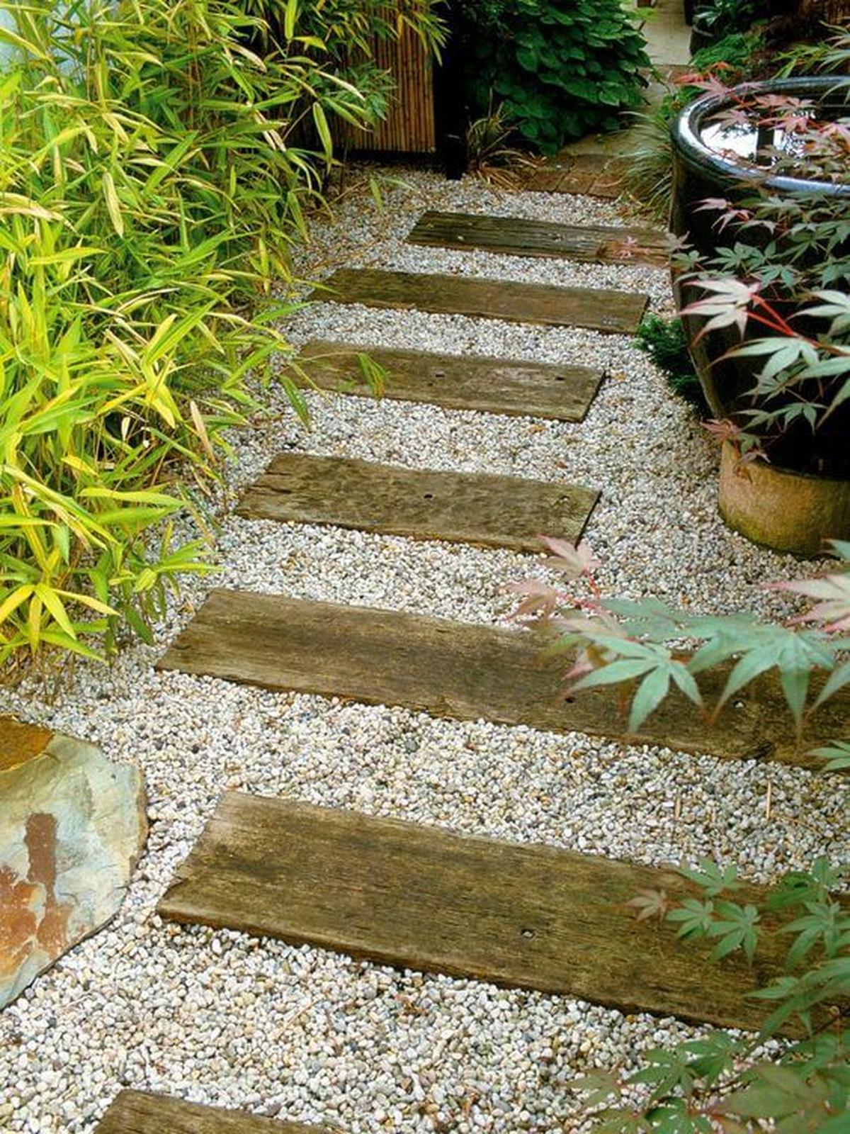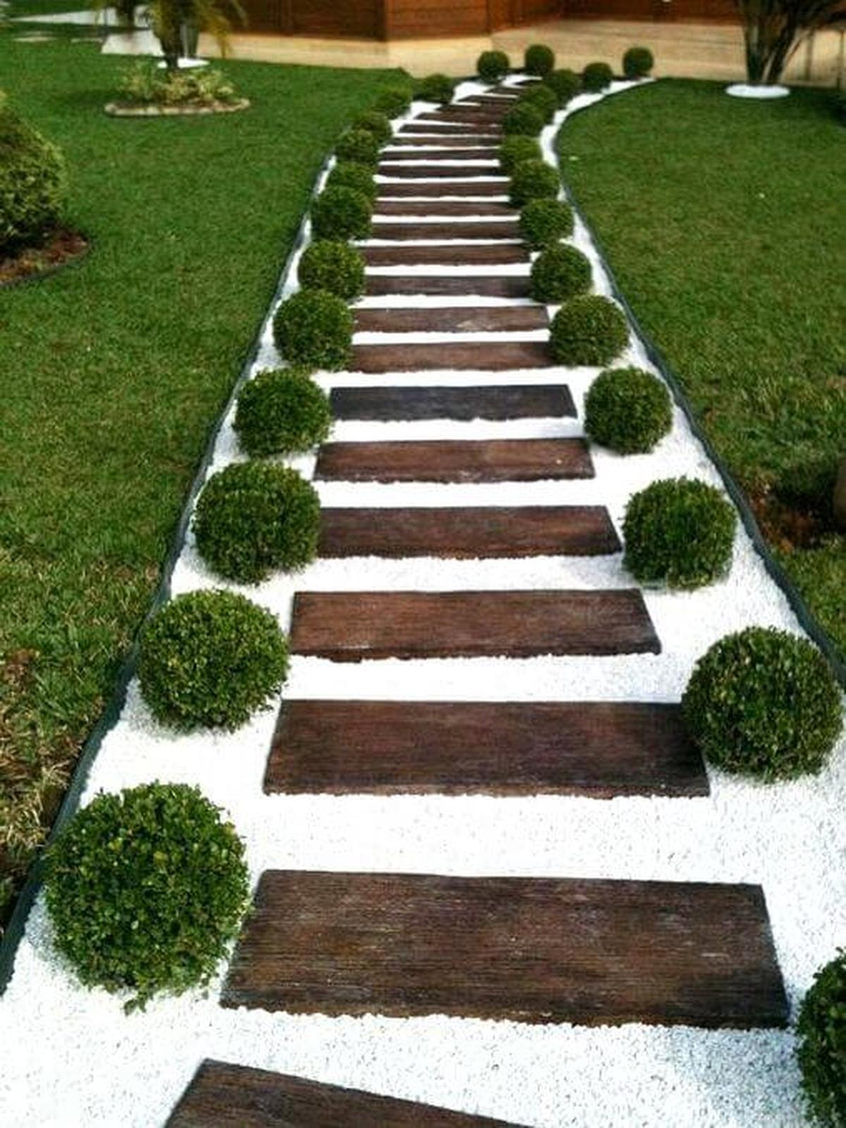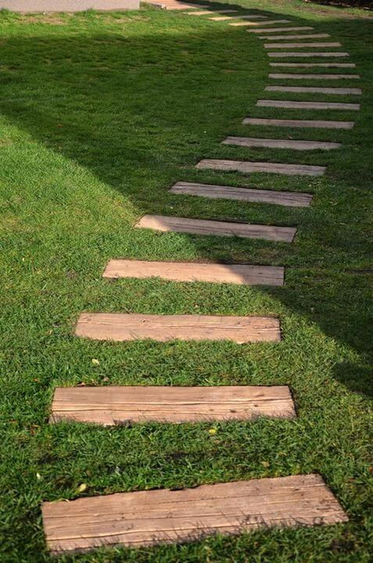 Consider incorporating varying lengths of the wood pieces to add visual interest and a playful rhythm to your landscape journey.
