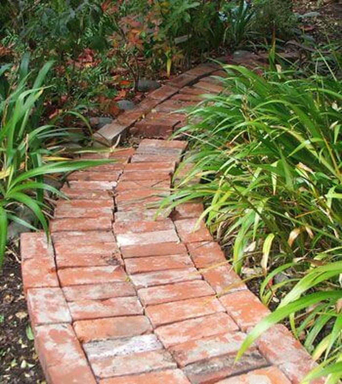 A winding brick path invites exploration through your garden, adding a rustic charm that encourages leisurely strolls.