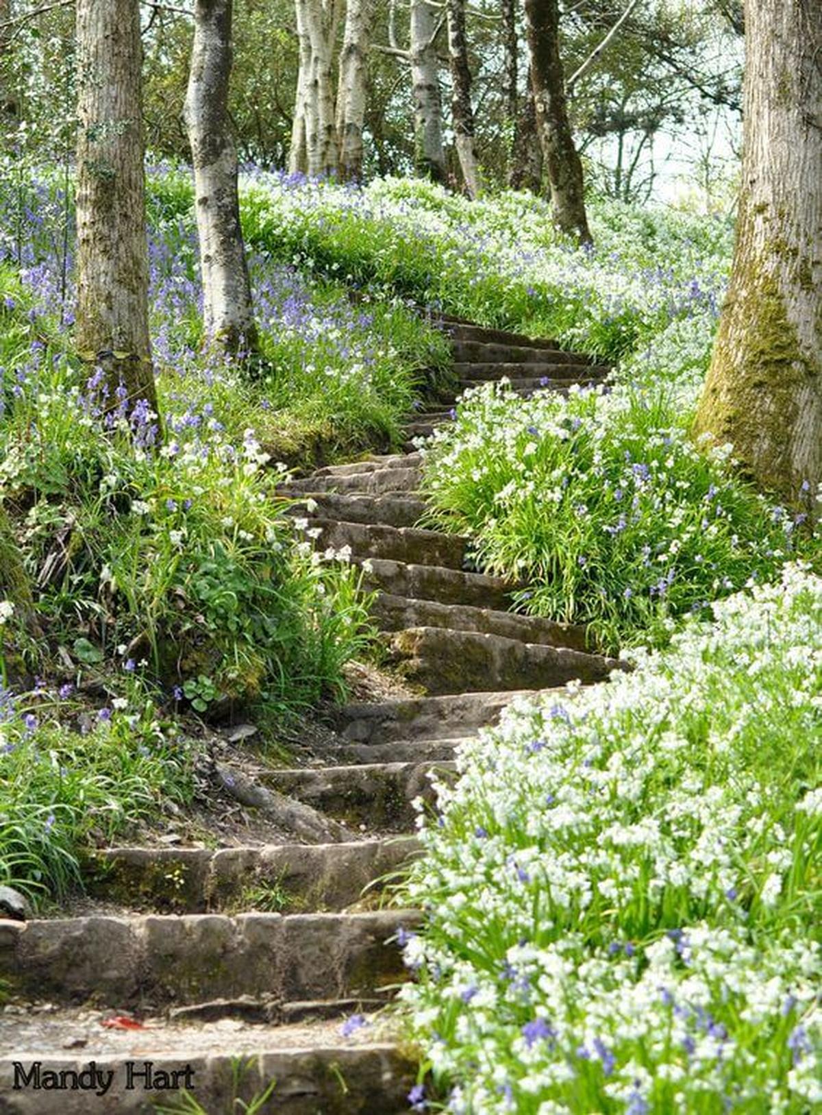 Each step varies in shape and size, giving it an organic charm that's both rustic and enchanting.