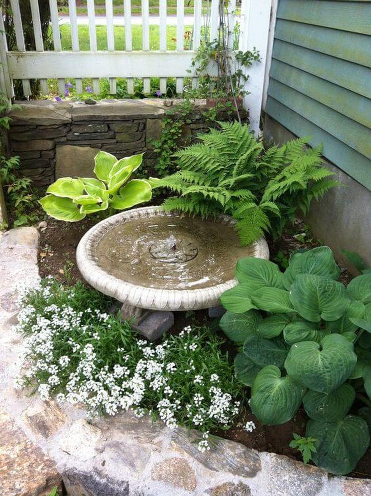 A charming water feature creates a soothing atmosphere in any garden corner, effortlessly blending nature with tranquility.