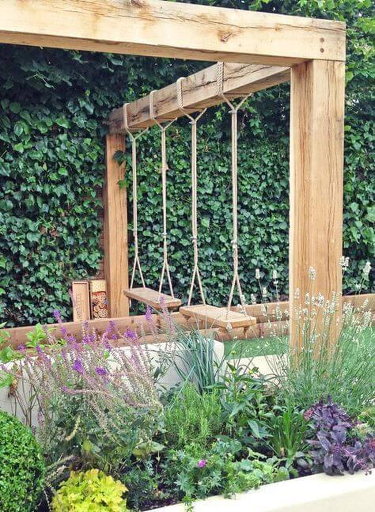 Add Swings for Garden Corner with Living Wall from Vining Plants